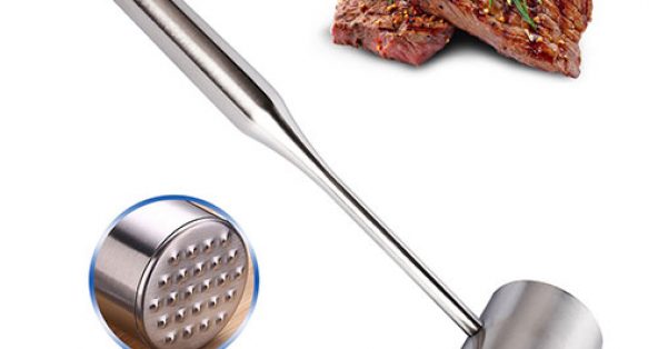 The BOQUN stainless steel meat tenderizer is made from one seamless piece of steel and has two sides to cover all your meat-tenderizing requirements. The textured side has twenty-four rivets…